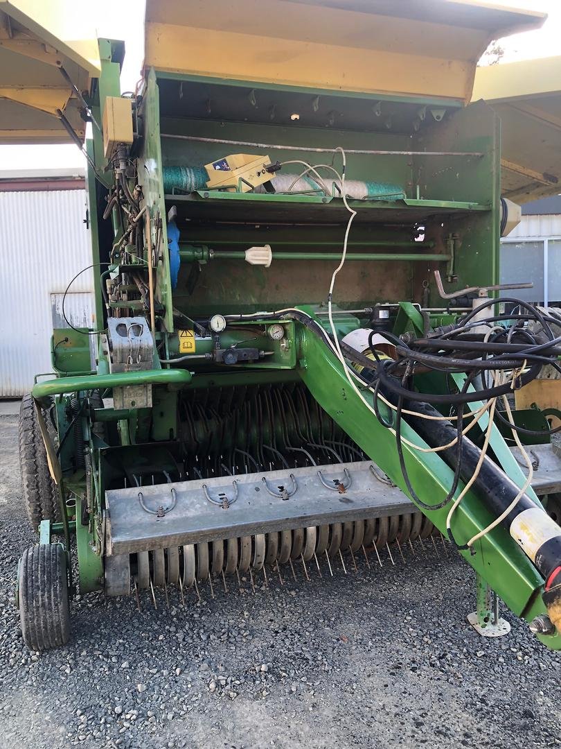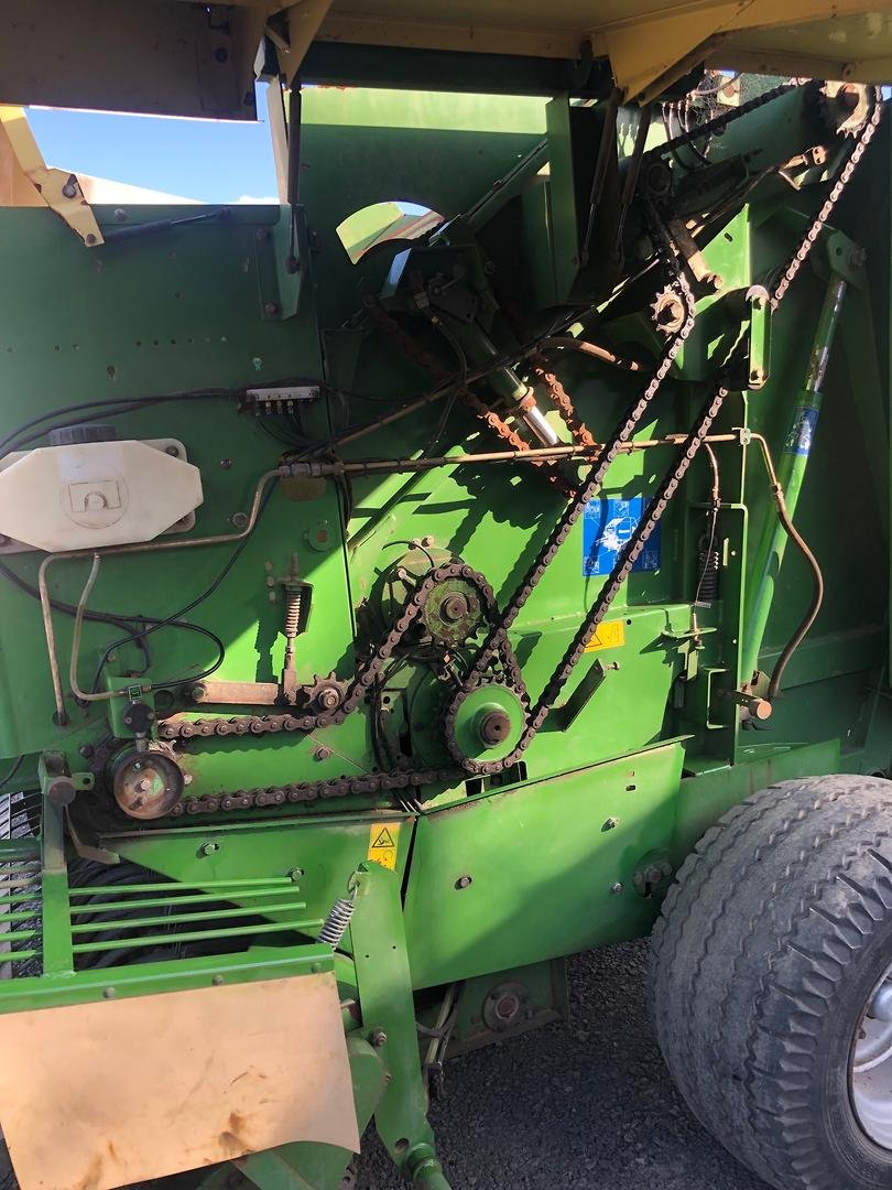 Removed all pick up chains, cleaned out pick up deck of all net wrap and rubbish, repaired pto shaft cover, checked wheel bearings, changed pick up bearings, cleaned all the hay and net rap out of the rollers, removed tail gate cover, drained density system, removed density chain that was broken, cut new chain, fitted chain, refitted density system , refitted covers, checked oil system was working and replaced three blocked nozzles, removed rear conveyor drive chain and sprocket, removed all covers and parts to be able to removed roller, removed spiral rover, removed bearings from roller, removed starter roller chain and tensioner, removed starter roller, removed starter roller shaft, removed starter roller bearings, refitted shaft , fitted new bearings and cir clips, removed cleaner bar, tidied up cleaner bar edge, cleaned brake surface rust, painted brake, cleaned and painted net spreader bars, fitted spiral roller, refitted bearings, fitted new sprocket, fitted other sprockets,fitted cleaner bar and adjusted up, fitted starter roller, oiled up and refitted all the chains, removed broken grease lines, got new lines and fitted, made up grease lines, fitted grease lines to baler, refitted covers, ran baler, oiled conveyor, cleaned all the rust off the knives, sharpened knifes and oiled them for storage, 39032 Bales